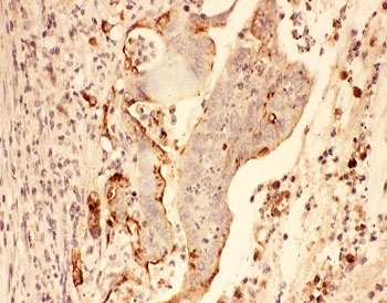- IHC-P: MMP7 antibody testing of human intestine cancer tissue