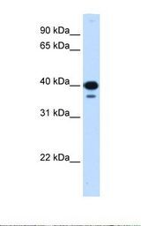 - Transfected 293T cell lysate. Antibody concentration: 0.25 ug/ml. Gel concentration: 12%. This image was taken for the unconjugated form of this product. Other forms have not been tested.