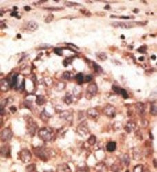 - Formalin-fixed and paraffin-embedded human cancer tissue reacted with the primary antibody, which was peroxidase-conjugated to the secondary antibody, followed by AEC staining.