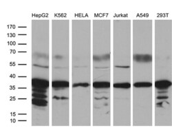 - Western blot analysis of extracts (35 µg) from 7 different cell lines by using anti-MED27 monoclonal antibody. (1:500)