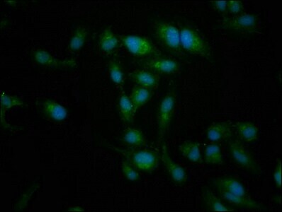 - Immunocytochemichal analysis of NT5C2 in Hela cells using a Polyclonal antibody (Product # PA5-112865) at a dilution of 1:266. The cells were fixed in 4% formaldehyde, permeabilized using 0.2% Triton X-100 and blocked in 10% normal Goat Serum. The cells were then incubated with the antibody overnight at 4°C. The secondary antibody was Alexa Fluor 488-congugated Goat Anti-Rabbit IgG(H+L). Cells were also counter-stained with DAPI.