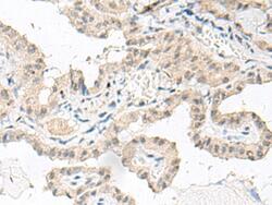 - Immunohistochemistry of paraffin-embedded Human thyroid cancer tissue using GFI1B Polyclonal Antibody at dilution of 1:80(×200)