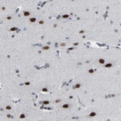 - Immunohistochemical staining of human cerebral cortex with FAM180A polyclonal antibody (Cat # PAB21369) shows strong nuclear positivity in neuronal cells at 1:20-1:50 dilution.