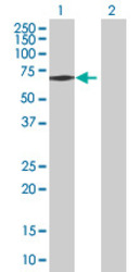 - Western Blot analysis of GTF3C5 expression in transfected 293T cell line (H00009328-T01) by GTF3C5 MaxPab polyclonal antibody.Lane 1: GTF3C5 transfected lysate(57.09 KDa).Lane 2: Non-transfected lysate.