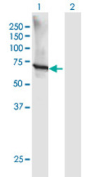 - Western Blot analysis of GTF3C5 expression in transfected 293T cell line (H00009328-T01) by GTF3C5 MaxPab polyclonal antibody.Lane 1: GTF3C5 transfected lysate(57.09 KDa).Lane 2: Non-transfected lysate.