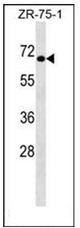 - Western blot analysis of GTF3C5 Antibody (Center) Cat.-No AP51975PU-NÂ in ZR-75-1 cell line lysates (35ug/lane). This demonstrates the GTF3C5 antibody detected the GTF3C5 protein (arrow).