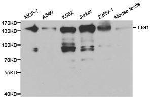 - Western blot analysis of extracts of various cell lines, using DNA Ligase I antibody.
