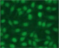 - Immunocytochemical detection of DNA Ligase I on acetone fixed HEp-II cells with AM26565AF-N.