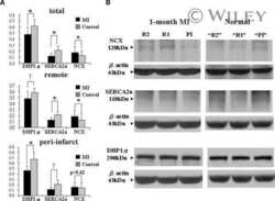 - Immunohistochemistry was performed on normal deparaffinized human Heart tissue. To expose target proteins, heat induced antigen retrieval was performed using 10mM sodium citrate (pH6.0) buffer, microwaved for 8-15 minutes. Following antigen retrieval tissues were blocked in 3% BSA-PBS for 30 minutes at room temperature. Tissues were then probed at a dilution of 1:200 with a mouse monoclonal antibody recognizing SERCA2 ATPase (Product # MA3-910) or without primary antibody (negative control) overnight at 4°C in a humidified chamber. Tissues were washed extensively with PBST and endogenous peroxidase activity was quenched with a peroxidase suppressor. Detection was performed using a biotin-conjugated secondary antibody and SA-HRP, followed by colorimetric detection using DAB. Tissues were counterstained with hematoxylin and prepped for mounting.