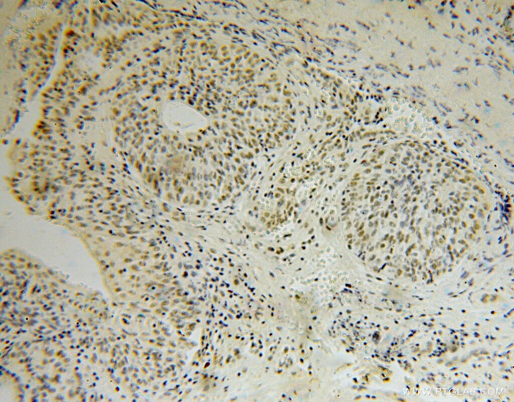 - Immunohistochemistry of paraffin-embedded human colon cancer using 16203-1-AP (TOE1 antibody) at dilution of 1:50 (under 10x lens).