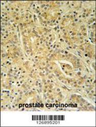 - UBAC1 Antibody (C-term) (Cat. #AP5353b) immunohistochemistry analysis in formalin fixed and paraffin embedded human prostate carcinoma followed by peroxidase conjugation of the secondary antibody and DAB staining. This data demonstrates the use of the UBAC1 Antibody (C-term) for immunohistochemistry. Clinical relevance has not been evaluated.