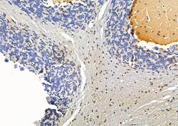 - Immunohistochemistry analysis of EMX2 in rat brain tissue. The sample was formaldehyde fixed and a heat mediated antigen retrieval step in citrate buffer was performed. Samples were incubated with EMX2 polyclonal antibody (Product # PA5-103315) using a dilution of 1:100 (4°C overnight) followed by HRP conjugated anti-Rabbit secondary antibody.