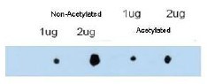 - Affinity purified anti-ATDC antibody shows reactivity by dot blot with acetylated and non-acetylated forms of the immunizing peptide. This antibody is predicted to recognize both acetylated (AcK116) and non-acetylated forms of ATDC protein.