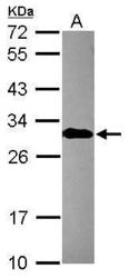 - Sample (30 ug of whole cell lysate) A: MCF-7 12% SDS PAGE GTX109198 diluted at 1:10000