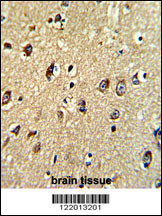 - "Formalin-fixed and paraffin-embedded human brain tissue with ABCC5 Antibody (Center), which was peroxidase-conjugated to the secondary antibody, followed by DAB staining. This data demonstrates the use of this antibody for immunohistochemistry; clinical relevance has not been evaluated."