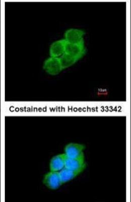 - Immunofluorescent analysis of 14-3-3 epsilon in methanol-fixed A431 cells using a 14-3-3 epsilon polyclonal antibody (Product # PA5-29773) at a 1:200 dilution.