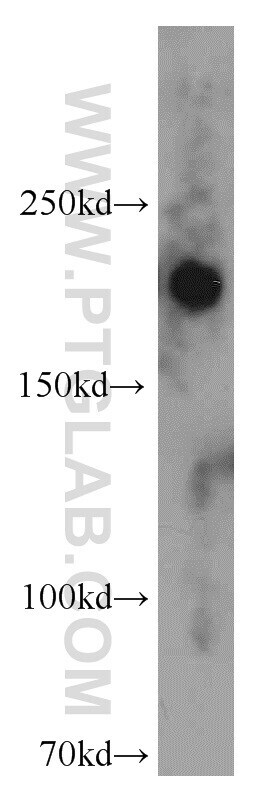 - Human brain tissue were subjected to SDS PAGE followed by western blot with 20119-1-AP (ZCCHC11 antibody) at dilution of 1:300 incubated at room temperature for 1.5 hours.