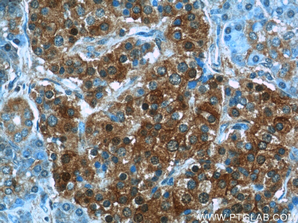 - Immunohistochemistry of paraffin-embedded human liver cancer tissue slide using 15059-1-AP (HPRT1 antibody) at dilution of 1:200 (under 40x lens) heat mediated antigen retrieved with Tris-EDTA buffer (pH 9).