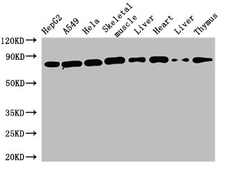 - Positive WB detected in:HepG2 whole cell lysate,A549 whole cell lysate,Hela whole cell lysate,Mouse skeletal muscle tissue,Mouse liver tissue,Rat heart tissue,Rat liver tissue,Rat thymus tissue;All lanes:SKIL antibody at 1.6?g/ml;Secondary;Goat polyclonal to rabbit IgG at 1/50000 dilution;Predicted band size: 77,47,72,45,75 KDa;Observed band size: 77 KDa;