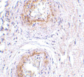 - Immunohistochemistry of GPR124 in human bladder tissue with GPR124 polyclonal antibody (Cat # PAB13307) at 5 ug/mL .