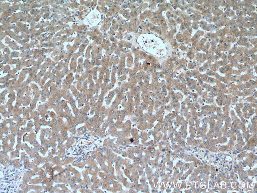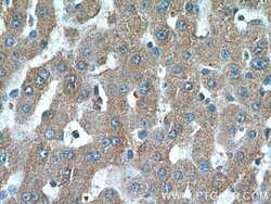 - Immunohistochemistry of paraffin-embedded human liver tissue slide using 11964-1-AP ( ANGPTL3 Antibody) at dilution of 1:200 (under 10x lens).