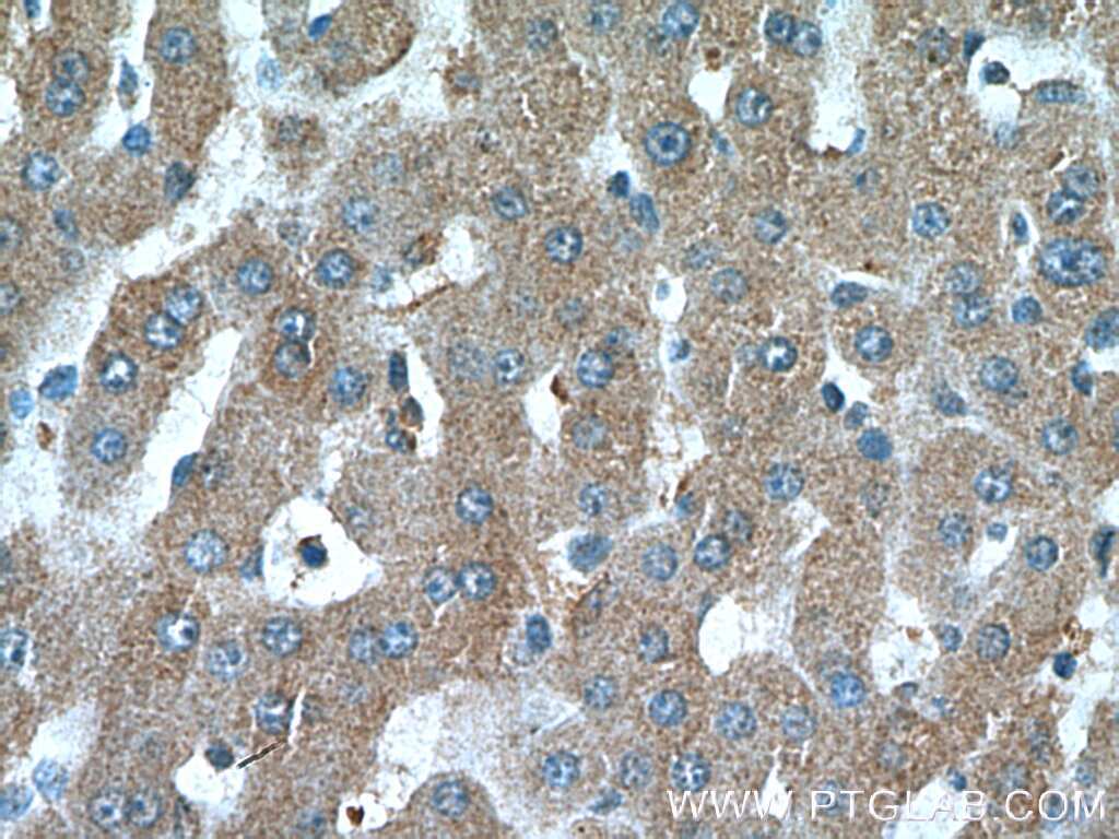 - Immunohistochemistry of paraffin-embedded human liver tissue slide using 11964-1-AP ( ANGPTL3 Antibody) at dilution of 1:200 (under 40x lens).