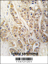 - Formalin-fixed and paraffin-embedded human breast carcinoma tissue reacted with CLIC4 antibody , which was peroxidase-conjugated to the secondary antibody, followed by DAB staining. This data demonstrates the use of this antibody for immunohistochemistry; clinical relevance has not been evaluated.