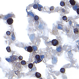 - Cathepsin E in Mouse Lung. Cathepsin E was detected in perfusion fixed frozen sections of mouse lung using Goat Anti-Mouse Cathepsin E Antigen Affinity-purified Polyclonal Antibody (Catalog # AF1130) at 15 µg/mL overnight at 4 °C. Tissue was stained using the Anti-Goat HRP-DAB Cell & Tissue Staining Kit (brown; Catalog # CTS008) and counterstained with hematoxylin (blue). Specific labeling was localized to the plasma membrane of type II alveolar cells. View our protocol for Chromogenic IHC Staining of Frozen Tissue Sections.
