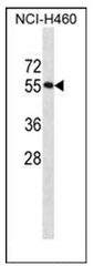 - Western blot analysis of RBM45 Antibody (C-term) Cat.-No AP53613PU-N in NCI-H460 cell line lysates (35ug/lane). This demonstrates the RBM45 antibody detected the RBM45 protein (arrow).
