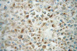 - Immunohistochemical of paraffin-embedded human liver cancer using 10957-1-AP(AOX antibody) at dilution of 1:100 (under 10x lens)