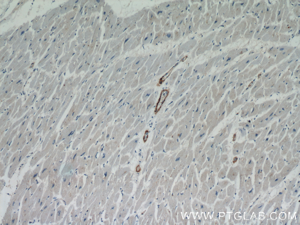 - Immunohistochemical of paraffin-embedded human heart using 13938-1-AP(CNN1 antibody) at dilution of 1:50 (under 10x lens)
