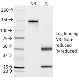- SDS-PAGE analysis Purified Calponin-1 Mouse Monoclonal Antibody (CALP). Confirmation of Purity and Integrity of Antibody.