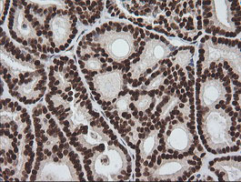 - IHC of paraffin-embedded Carcinoma of Human thyroid tissue using anti-ZSCAN18 mouse monoclonal antibody. (Heat-induced epitope retrieval by 10mM citric buffer, pH6.0, 120°C for 3min).