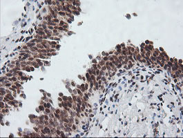 - IHC of paraffin-embedded Human bladder tissue using anti-ZSCAN18 mouse monoclonal antibody. (Heat-induced epitope retrieval by 10mM citric buffer, pH6.0, 120°C for 3min).