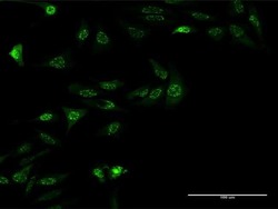 - Immunofluorescence analysis of HeLa cells using an anti-ZSCAN18 monoclonal antibody (Product # MA5-22540). (antibody concentration 40 µg/mL).
