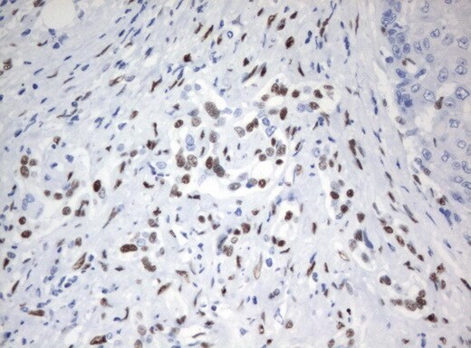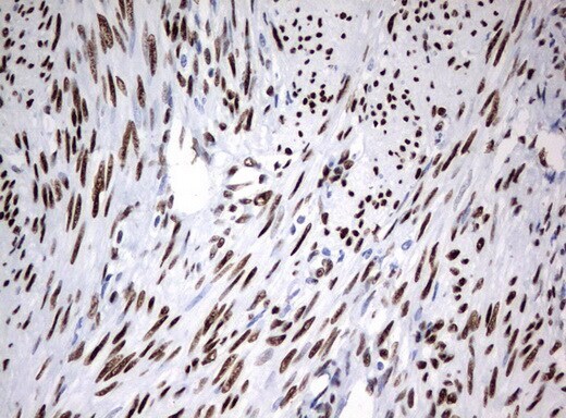 - Immunohistochemical staining of paraffin-embedded human endometrium tissue using anti-ZSCAN18 mouse monoclonal antibody. (UM500081; heat-induced epitope retrieval by 10mM citric buffer, pH6.0, 120°C for 3min)