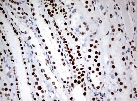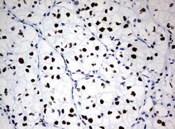 - Immunohistochemical staining of paraffin-embedded human Kidney tissue using anti-ZSCAN18 mouse monoclonal antibody. (UM500081; heat-induced epitope retrieval by 10mM citric buffer, pH6.0, 120°C for 3min)