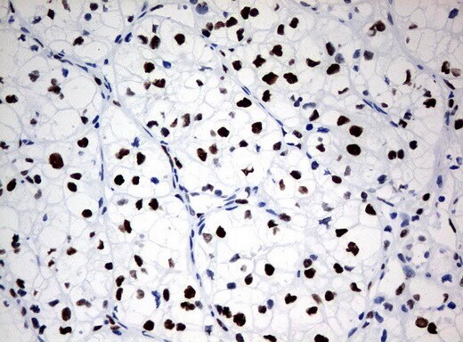 - Immunohistochemical staining of paraffin-embedded Carcinoma of Human kidney tissue using anti-ZSCAN18 mouse monoclonal antibody. (UM500081; heat-induced epitope retrieval by 10mM citric buffer, pH6.0, 120°C for 3min)