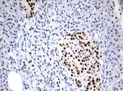 - Immunohistochemical staining of paraffin-embedded human pancreas tissue using anti-ZSCAN18 mouse monoclonal antibody. (UM500081; heat-induced epitope retrieval by 10mM citric buffer, pH6.0, 120°C for 3min)
