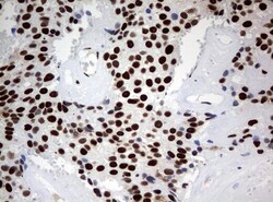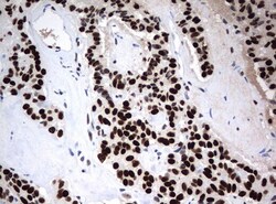 - Immunohistochemical staining of paraffin-embedded Adenocarcinoma of Human breast tissue using anti-ZSCAN18 mouse monoclonal antibody. (UM500081; heat-induced epitope retrieval by 10mM citric buffer, pH6.0, 120°C for 3min)