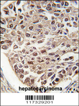 - Formalin-fixed and paraffin-embedded human lung carcinoma tissue reacted with SFRS2 antibody (N-term), which was peroxidase-conjugated to the secondary antibody, followed by DAB staining. This data demonstrates the use of this antibody for immunohistochemistry; clinical relevance has not been evaluated.