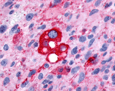- Anti-FP / PTGFR antibody IHC of human Brain, Glioblastoma. Immunohistochemistry of formalin-fixed, paraffin-embedded tissue after heat-induced antigen retrieval.