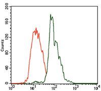 - FACS analysis of HEK293 cells using CBX8 antibody [9C3D4] (green) or a negative control (red).
