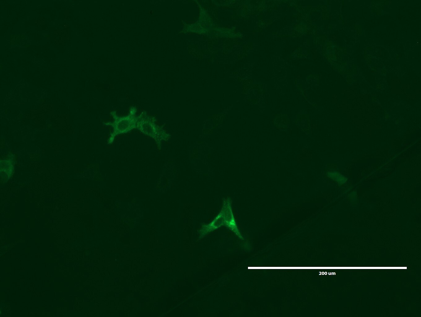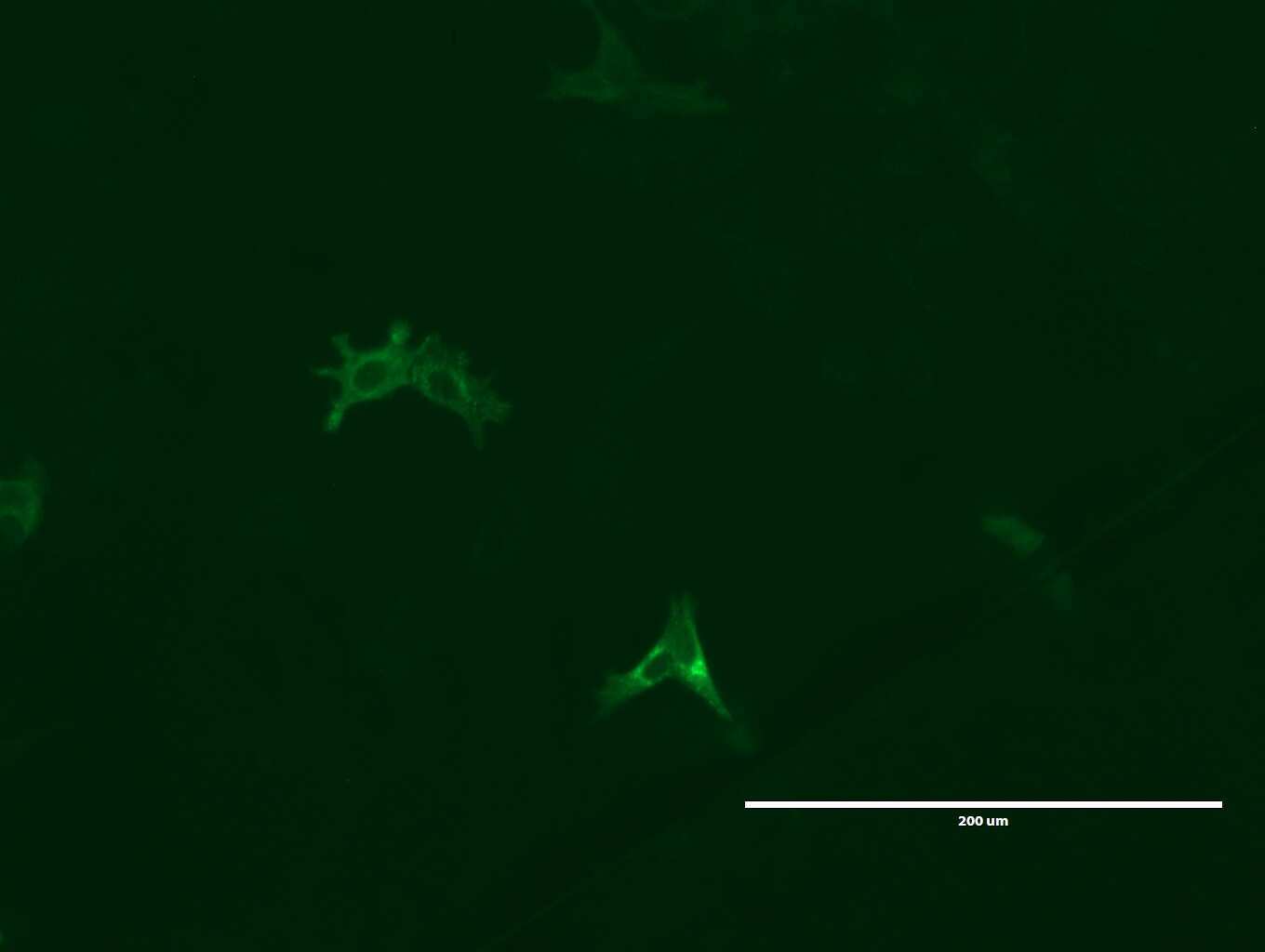 - Anti-LGR5 mouse monoclonal antibody (UM800104)immunofluorescent staining of MCF7 cells transiently transfected by pCMV6-ENTRY mouse LGR5(MR219702). (1:100)