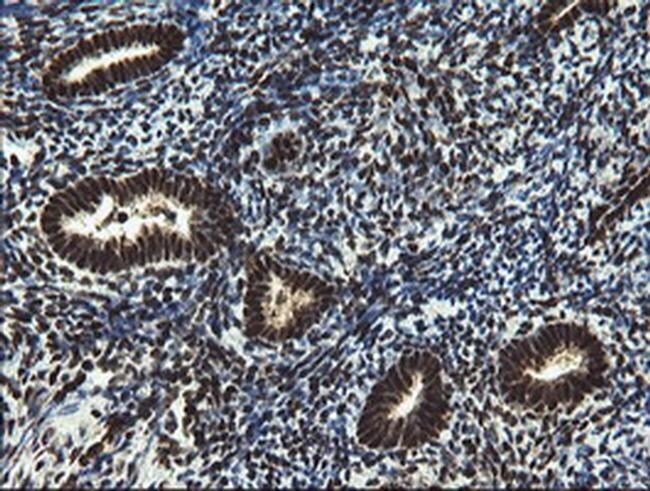 - Immunohistochemical staining of paraffin-embedded human endometrium tissue within the normal limits using anti-MPI mouse monoclonal antibody. (Heat-induced epitope retrieval by 10mM citric buffer, pH6.0, 120°C for 3min, TA504772)