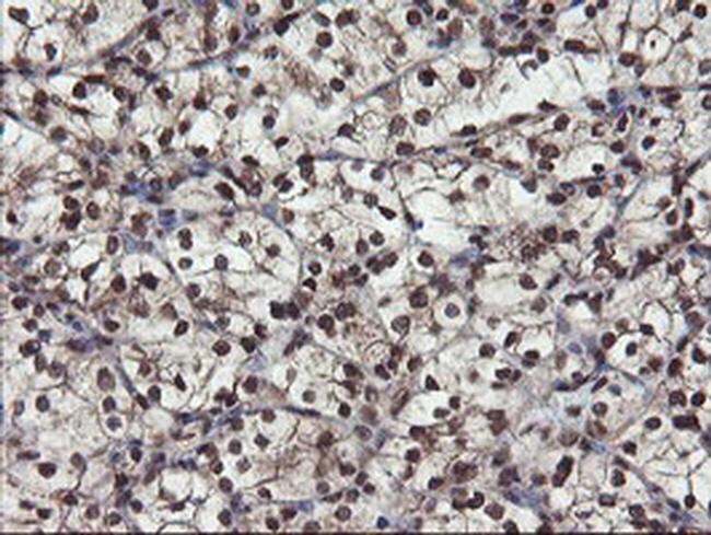 - Immunohistochemical staining of paraffin-embedded Carcinoma of Human kidney tissue using anti-MPI mouse monoclonal antibody. (Heat-induced epitope retrieval by 10mM citric buffer, pH6.0, 120°C for 3min, TA504772)