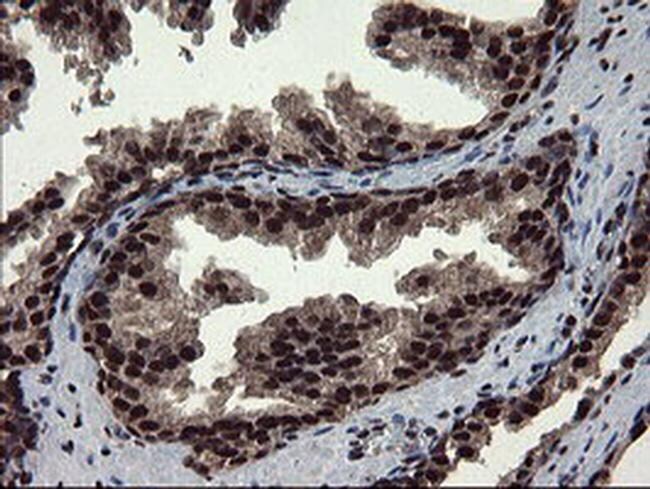 - Immunohistochemical staining of paraffin-embedded Carcinoma of Human prostate tissue using anti-MPI mouse monoclonal antibody. (Heat-induced epitope retrieval by 10mM citric buffer, pH6.0, 120°C for 3min, TA504772)
