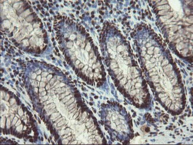 - Immunohistochemical staining of paraffin-embedded human colon tissue within the normal limits using anti-MPI mouse monoclonal antibody. (Heat-induced epitope retrieval by 10mM citric buffer, pH6.0, 120°C for 3min, TA504772)