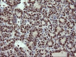 - Immunohistochemical staining of paraffin-embedded Carcinoma of Human thyroid tissue using anti-MPI mouse monoclonal antibody. (Heat-induced epitope retrieval by 10mM citric buffer, pH6.0, 120°C for 3min, TA504772)