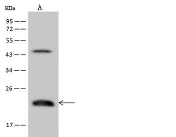 - Western Blot analysis of TMEM109 using TMEM109 Polyclonal Antibody (Product # PA5-112198) at a dilution of 1:500. Lane A: U-251 MG whole cell lysate, (Lysates/proteins at 30 µg per lane). The secondary antibody used was a Goat Anti-Rabbit IgG (H+L)/HRP at 1:10,000 dilution. Developed using the ECL technique and performed under reducing conditions. Predicted band size: 20 kDa. Observed band size: 22 kDa.